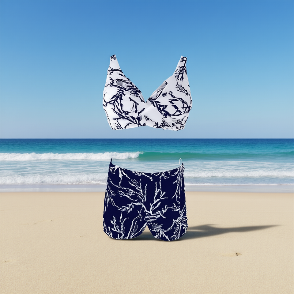 Set bikini HDJ con pantaloncini a vita alta, top push-up, costume da bagno taglie forti per la spiaggia, motivo a piante, set da 2 pezzi