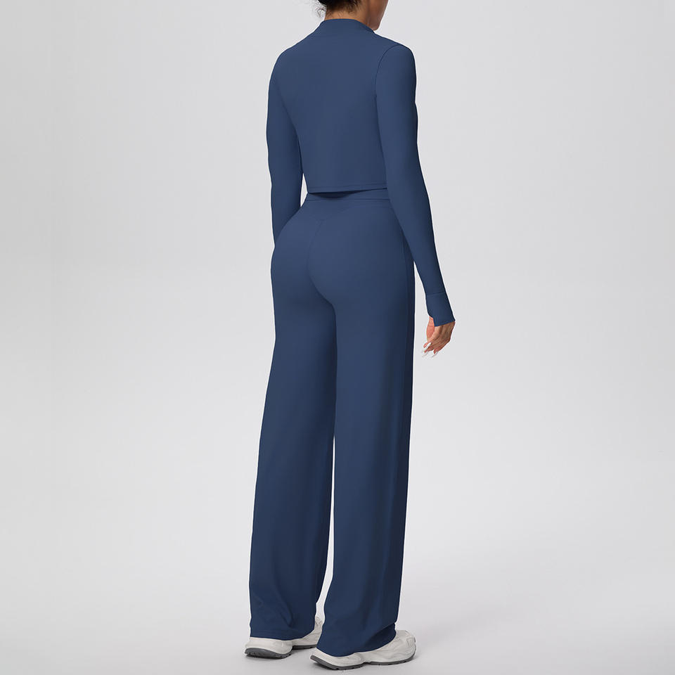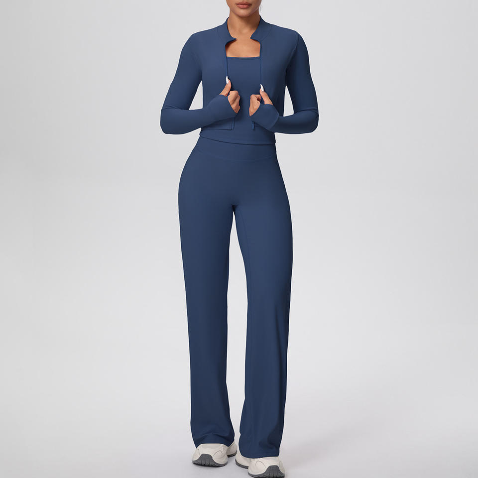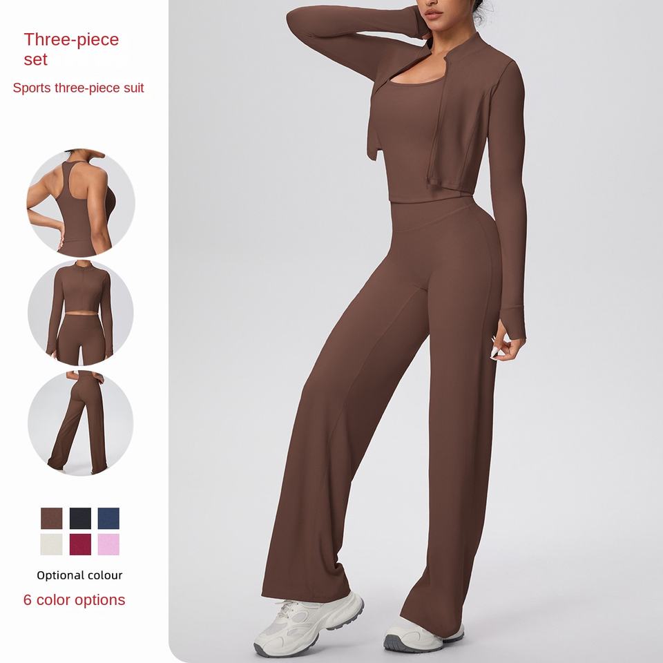 Taglie forti elastico in vita a forma di gilet a gamba larga lungo tre pezzi sportivo da corsa Fitness Yoga Suit