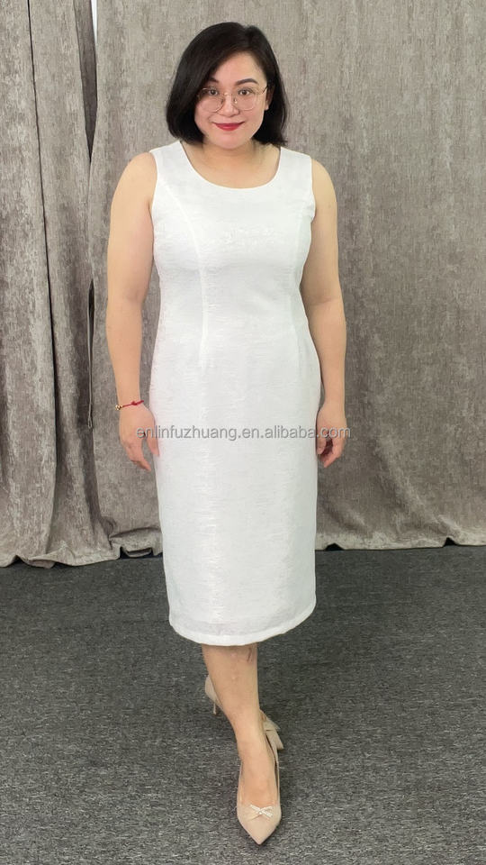 Abito Formale Taglie Forti per Donne, Vestito Bianco da Cerimonia per Chiese