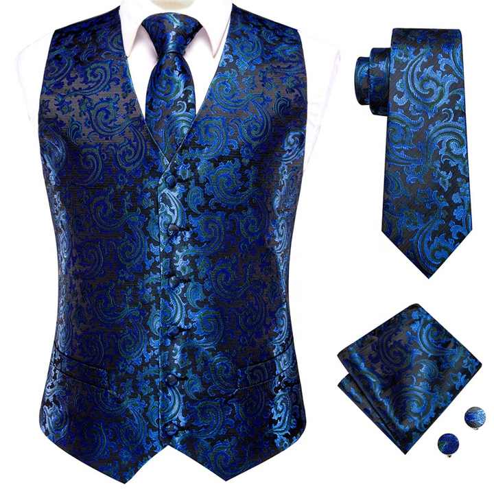 Dettagli della confezione:Panciotto, cravatta, fazzoletto e gemelli con borsa in poliestere