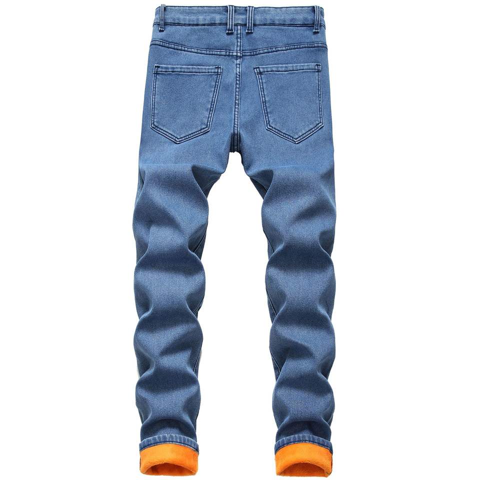 Jeans Invernali da Uomo Taglie Forti Felpati Caldi Denim Spesso Slim a Gamba Dritta