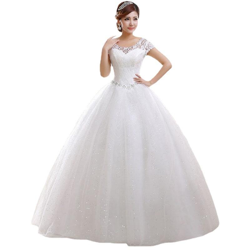 Abiti da Sposa Taglie Forti Moderni a Linea ad A Rossi e Bianchi in Pizzo con Scollo Rotondo e Paillettes Abiti da Sposa da Principessa Economici Foto Reale