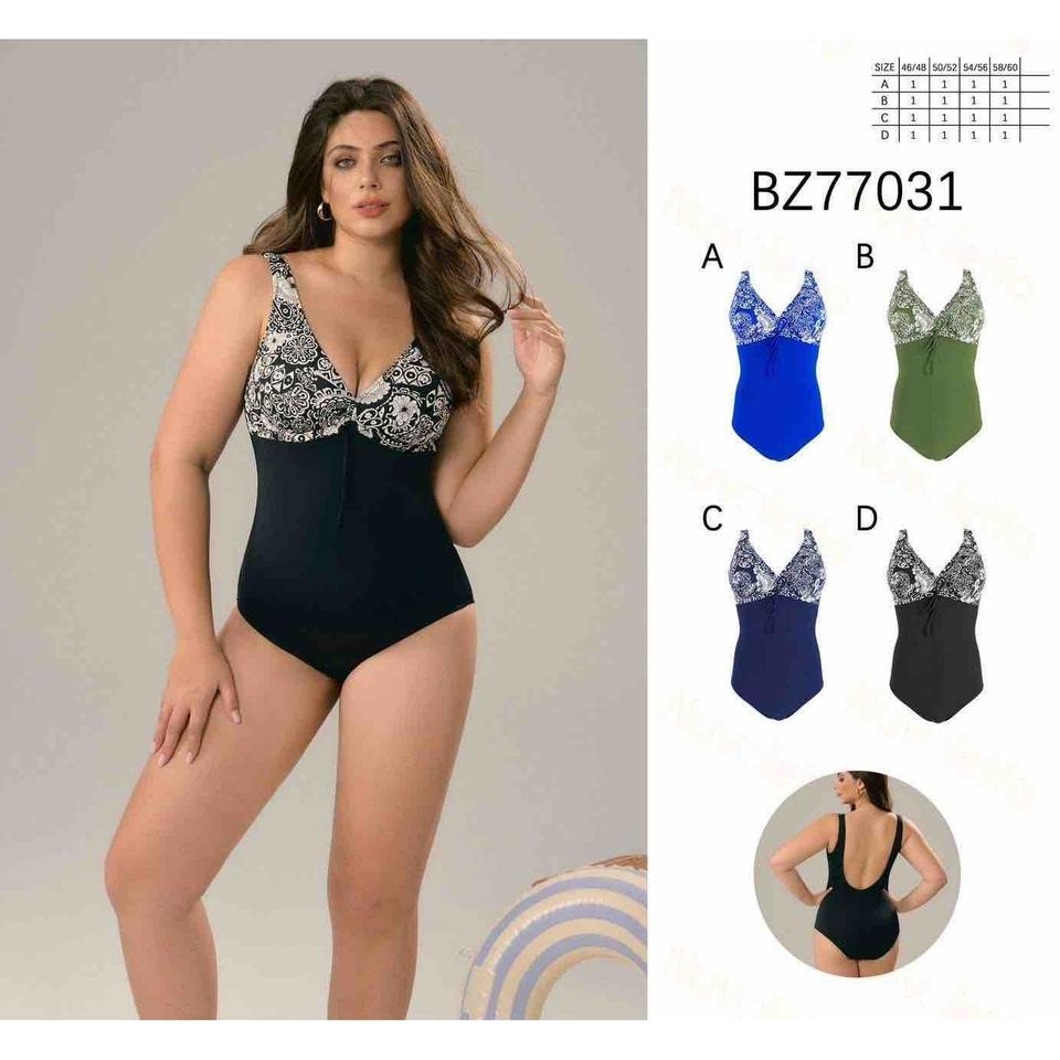 Costume da bagno intero HDJ Plus Size con controllo pancia, scollo a V profondo, stampa floreale, vita alta, da donna BZ77031