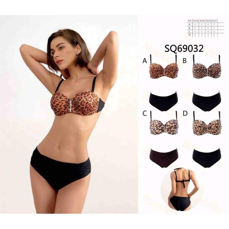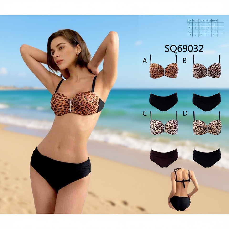 Top bikini push-up con stampa leopardata HDJ e slip hipster neri, set di costumi da bagno taglie forti SQ69060