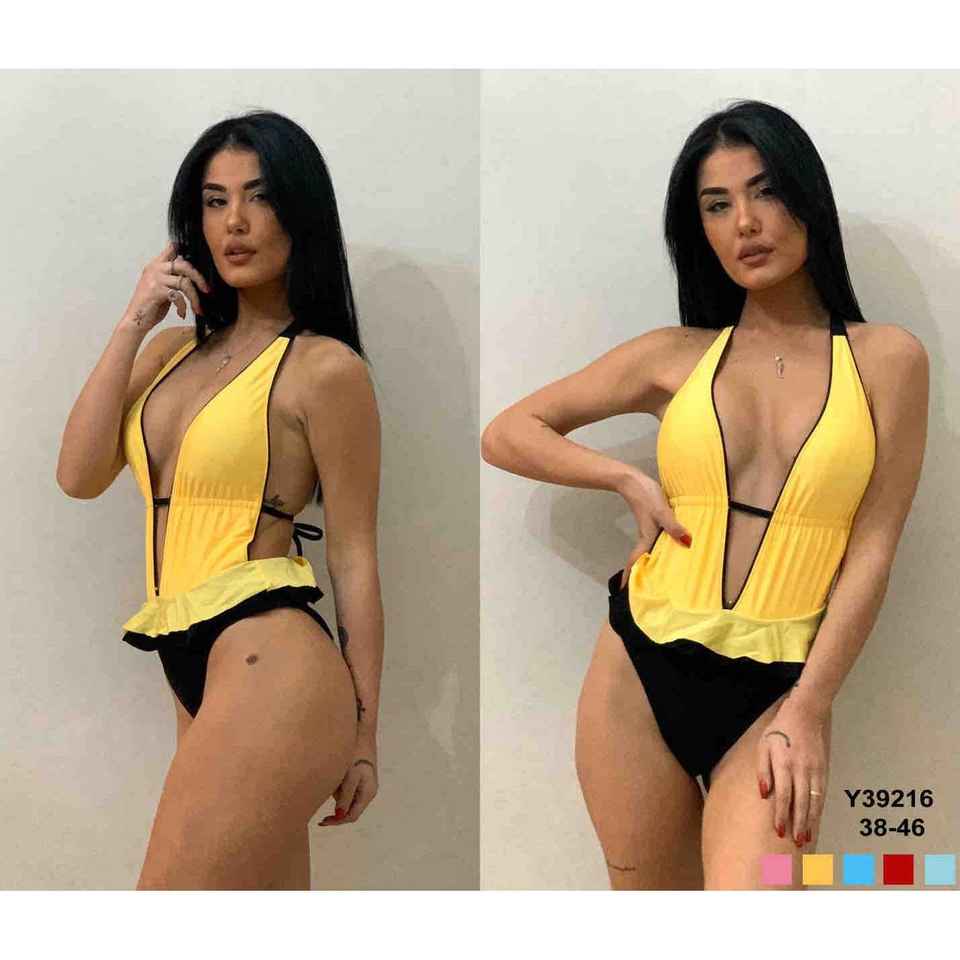 Costume da bagno intero taglie forti con controllo pancia, monokini sexy e coprente per la spiaggia, taglie 38-46, giallo e nero