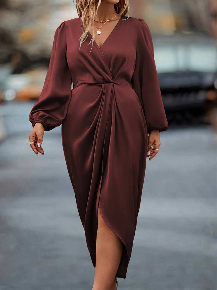 Abiti Taglie Forti Drappeggiati con Vita Stretta Vestidos Para Fiesta Abito da Sera Elegante da Donna in Raso Elasticizzato a Maniche Lunghe