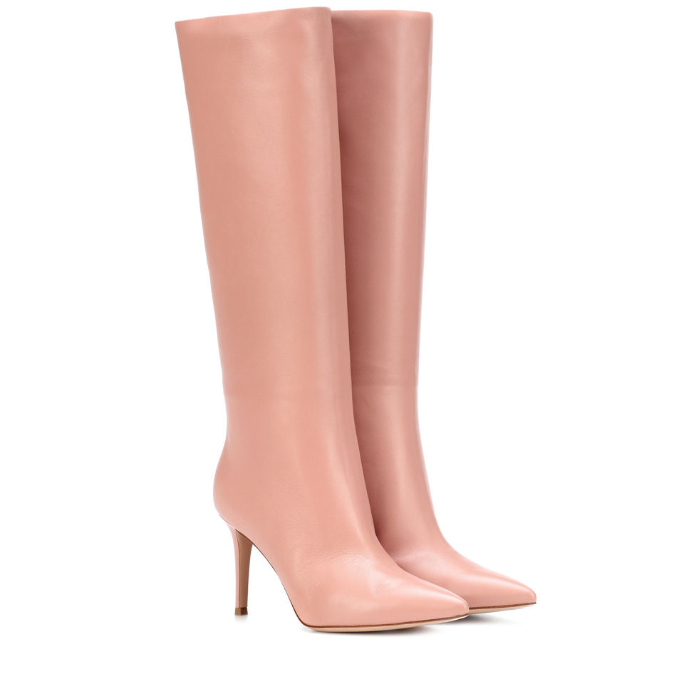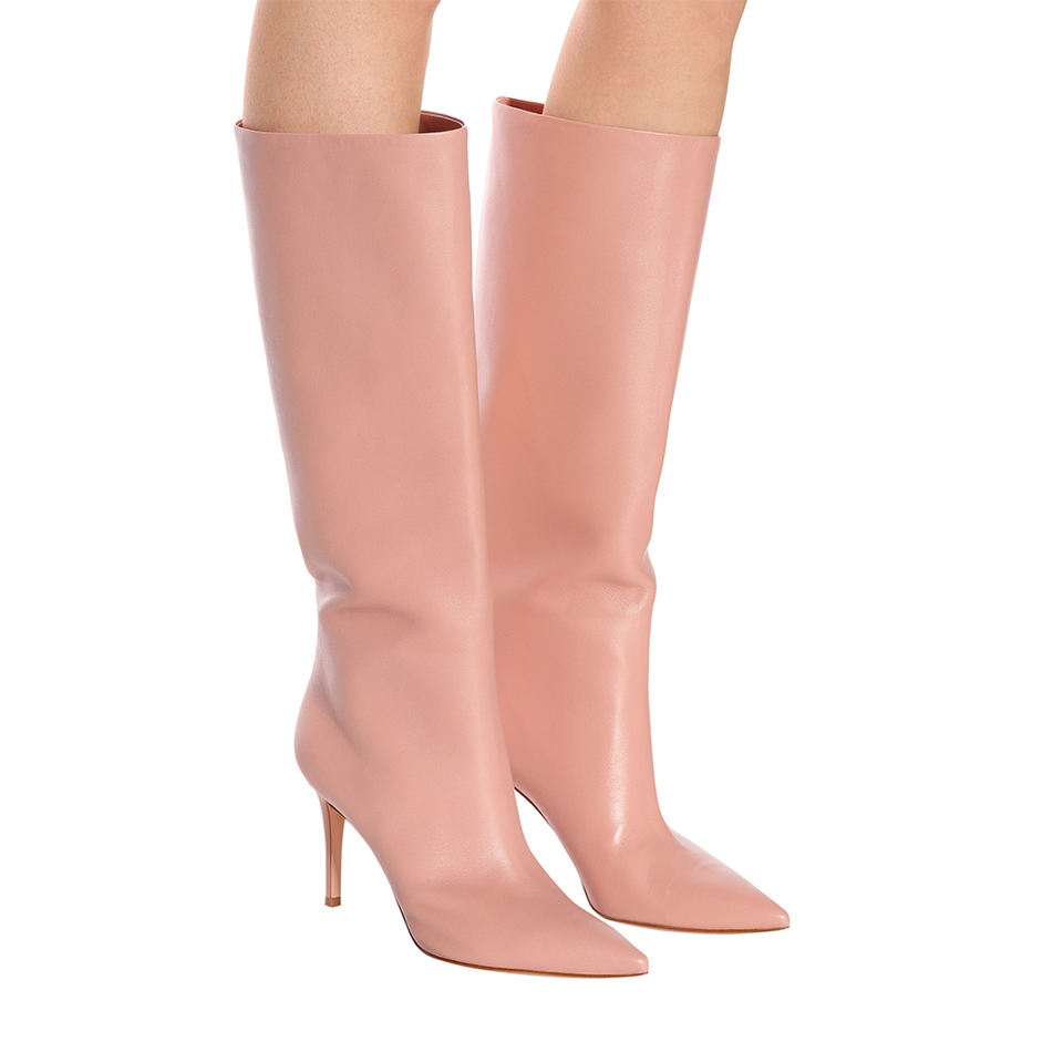 Plus Size Slip on Red Heels Ladies Winter White Shoes Black Tube Shaft Tall Boots Women Pointy High Heel Pink Knee High Boots