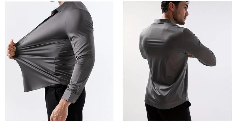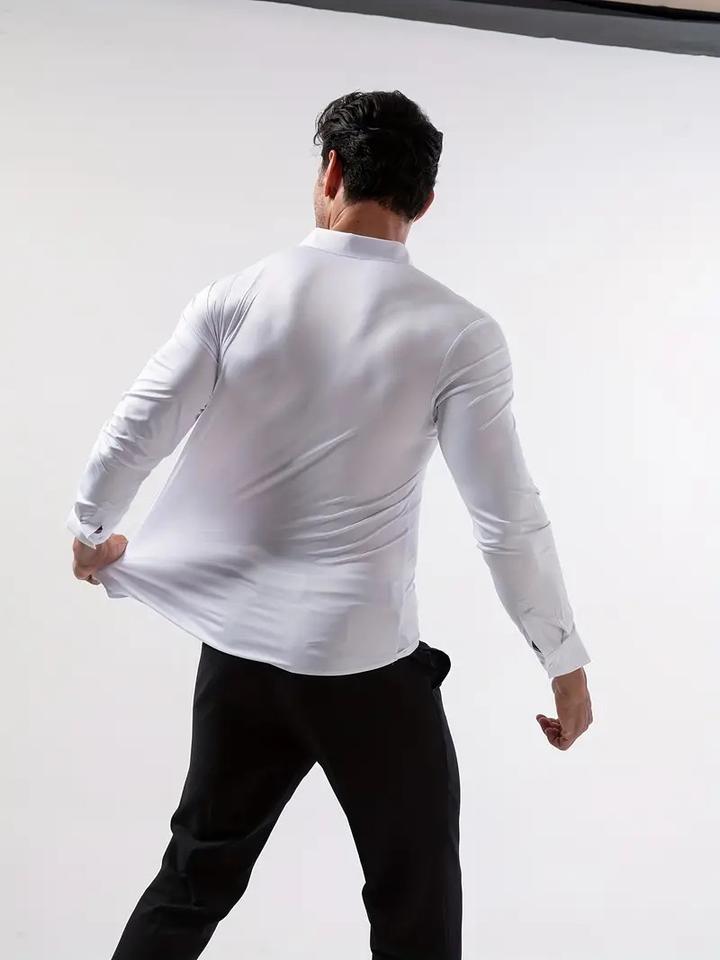 Taglie forti Top tinta unita Stretch antirughe senza stiratura colletto a maniche lunghe camicia da uomo