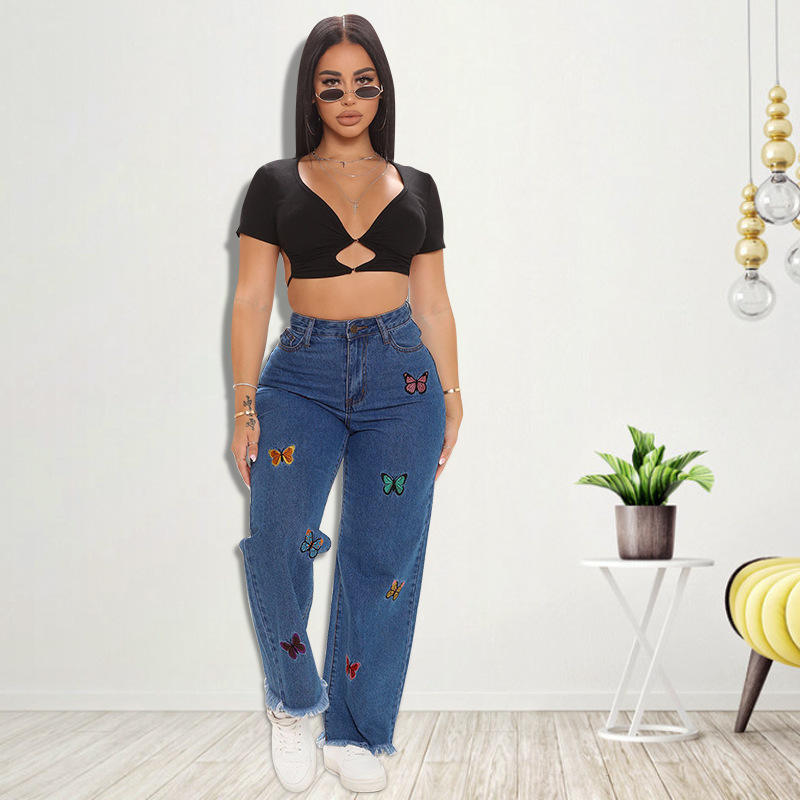 Jeans da Donna Taglie Forti con Ricamo Personalizzato, Jeans a Vita Alta, Pantaloni in Denim per Donna