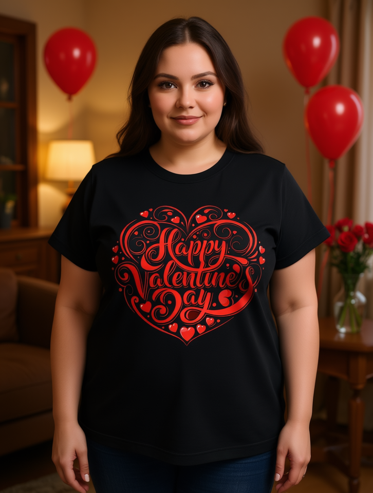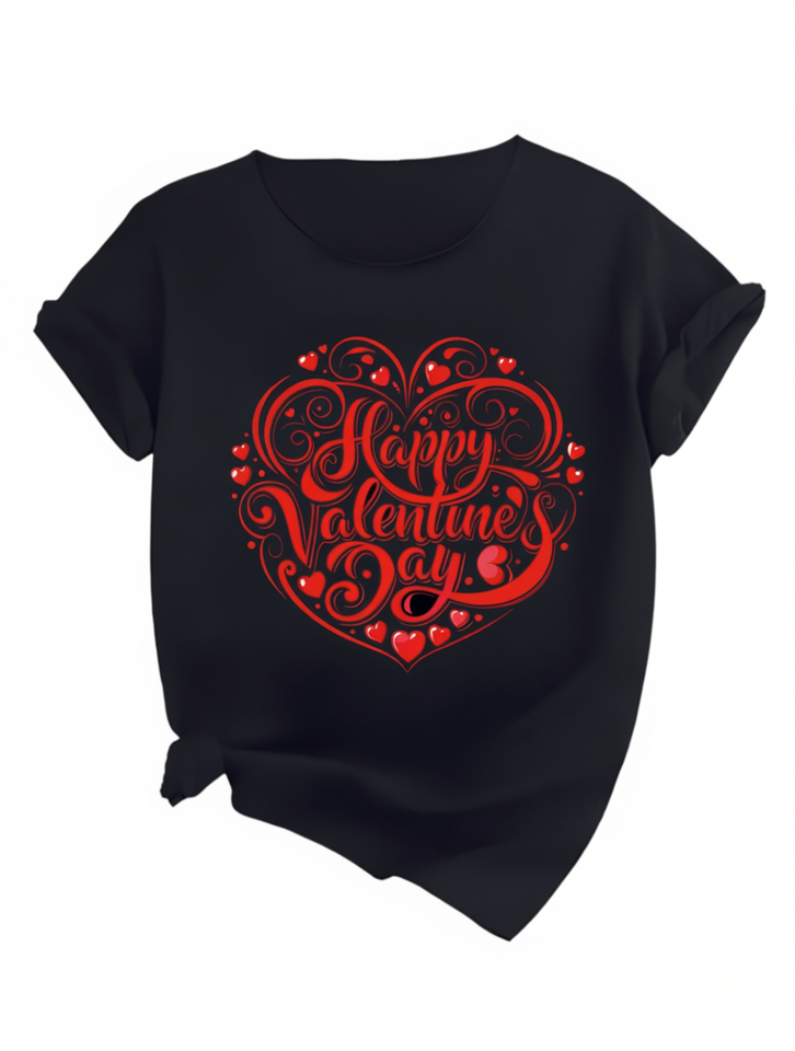 Plus Size Women's Valentine's Day Printed T-Shirt Loose Fit Short Sleeve Classic Round Neck 100% Cotton Jersey Fabric