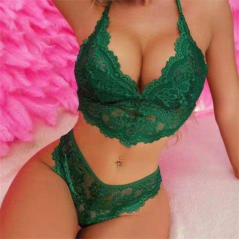 Lingerie Sexy Taglie Forti da Esportazione - Set Tre Pezzi Sexy Trasparente in Pizzo con Schiena Scoperta - Mutandine in Pizzo