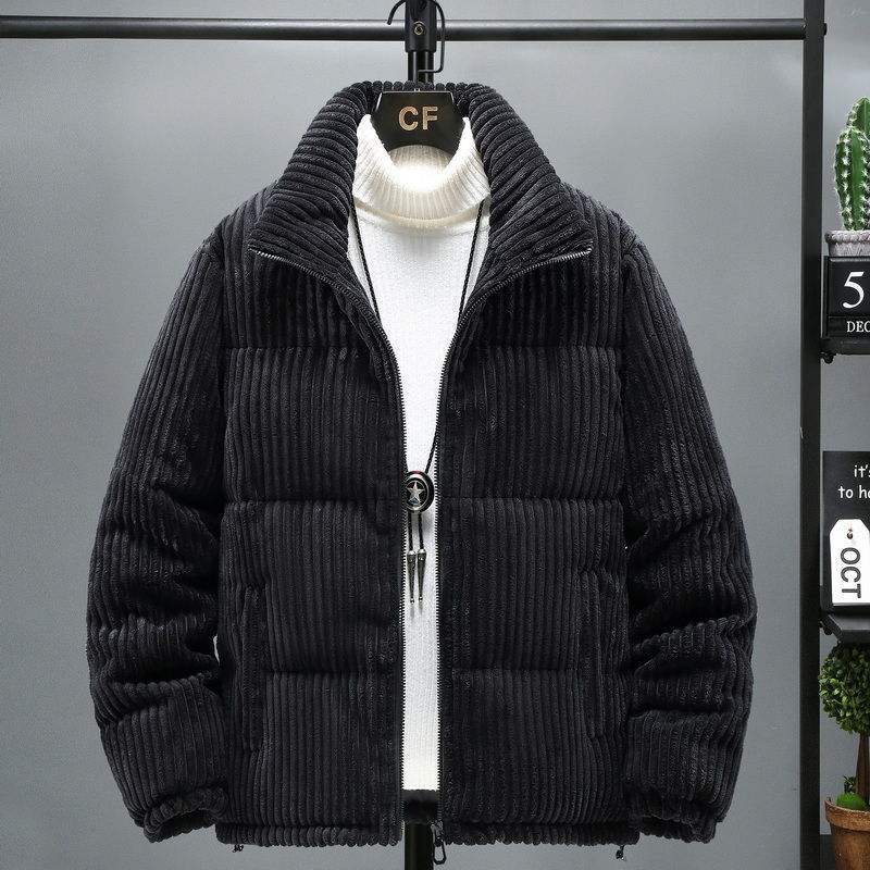 Giacca Imbottita Invernale da Uomo Taglie Forti in Velluto a Coste Stile Retrò 2025 con Collo Alto - Giacca Trapuntata Calda per Uomo