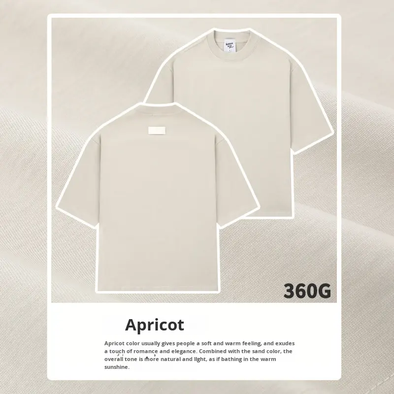 T-shirt in Cotone Pesante 360g Taglia Extra Large, Tinta Unita, Stile Vintage, Collo Tondo, Manica Corta, Traspirante, Oversize, Giovanile 2024