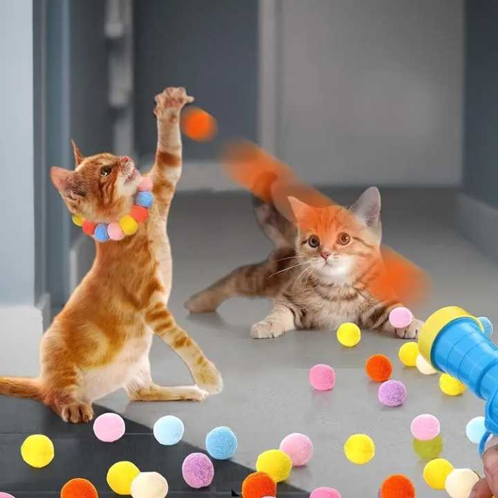 Palla di peluche tiro pistola Mini palline di schiuma Blasters Pet palla di lancio giocattoli interattivi per gatti giocattolo che rimbalza palla per animali domestici