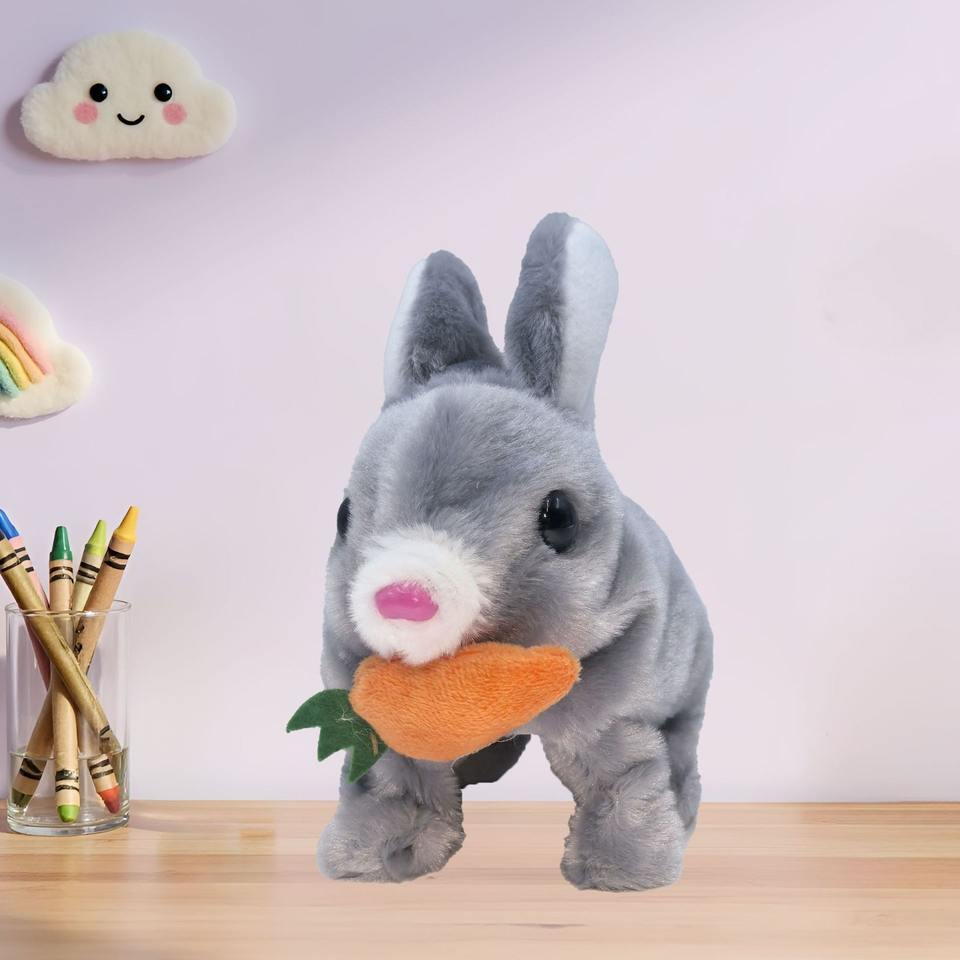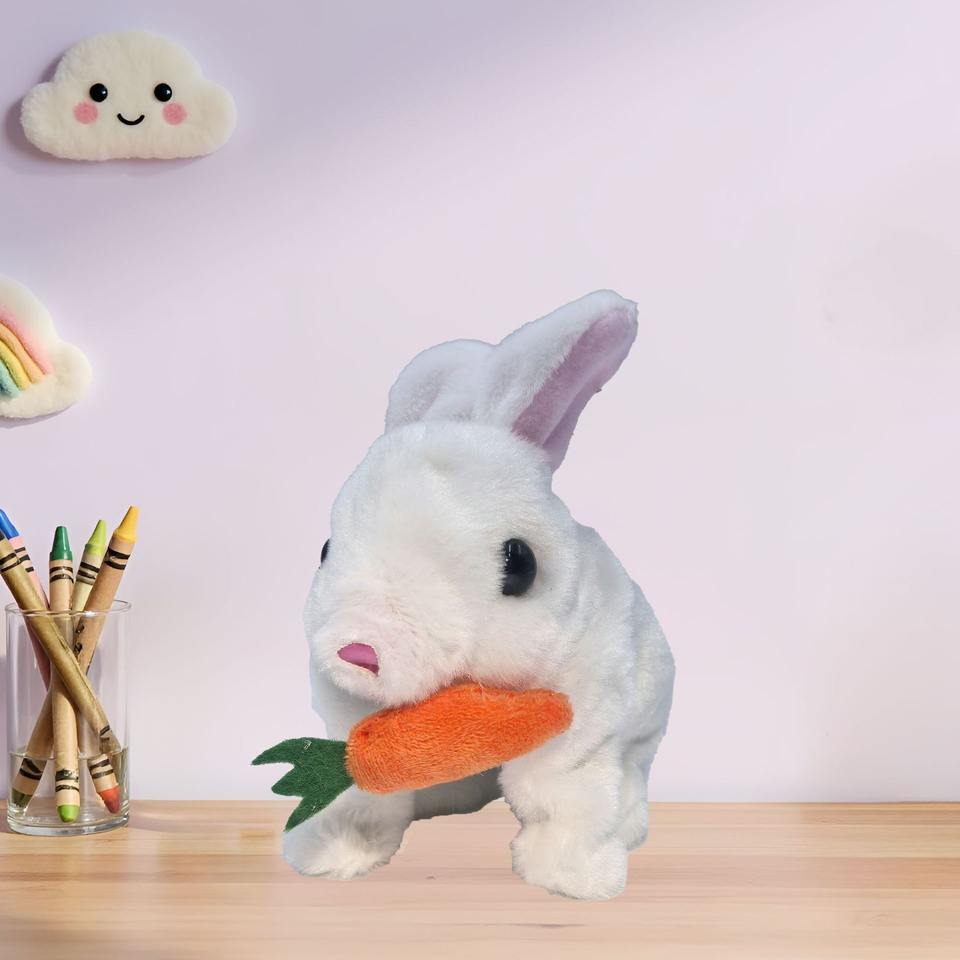 Coniglio Elettrico di Peluche Bianco, Simulazione Animale Domestico, Coniglio Radish che Corre e Canta, Giocattolo in Velluto Caldo, Adorabile Bambola Cartone Animato in Plastica