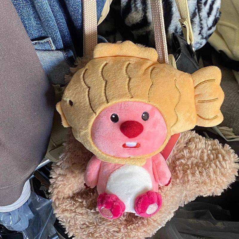 Plush Four Inch Small Doll Cute Small Fox with Fish Head Backpack Hanging Key Chain Doll for Kids