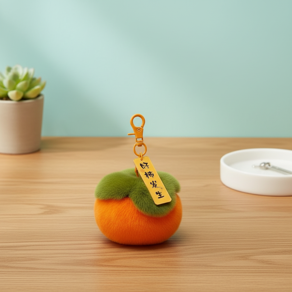 Portachiavi in Peluche Imitazione Pelliccia di Coniglio, Decorazione per Zaino, Ciondolo a Forma di Cachi