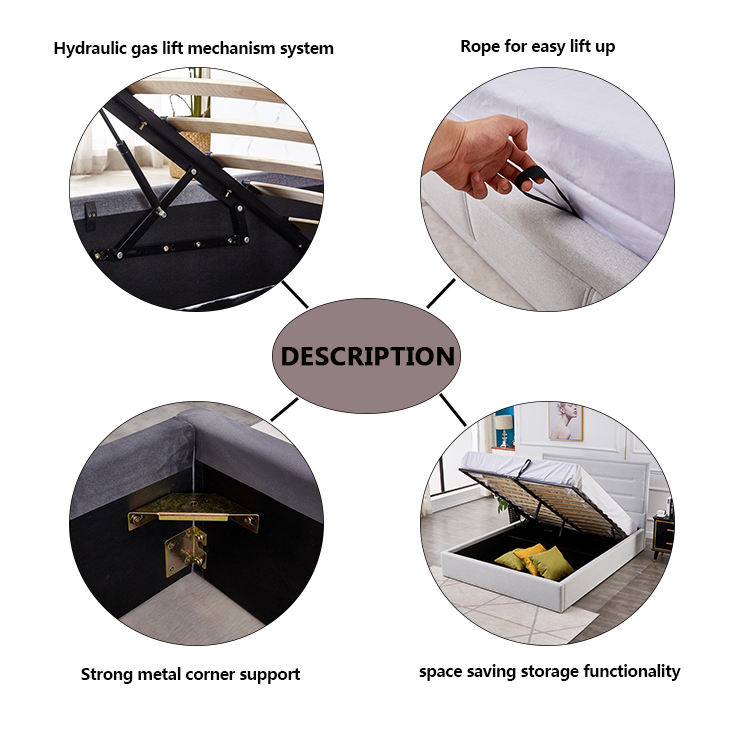 Nome del prodotto:Bottoni tappezzeria carboncino tessuto Gas Lift struttura letto deposito