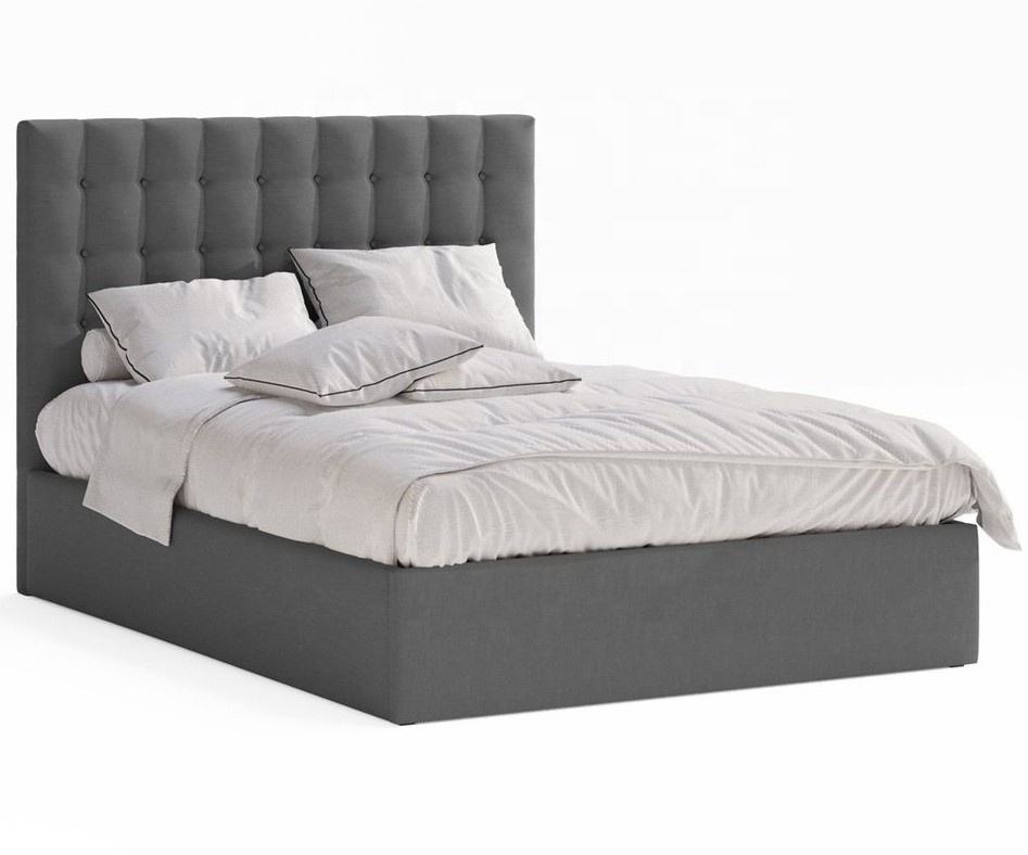 Testiera Imbottita in Peluche con Colonne Verticali di Bottoni, Rivestimento in Tessuto Grigio Antracite, Struttura Letto con Contenitore e Sollevamento a Gas