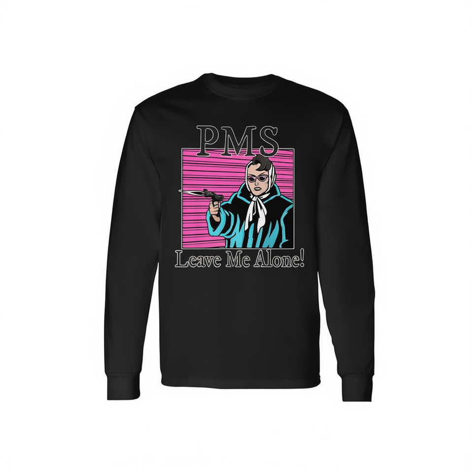 T-shirt a maniche lunghe Pms Leave Me Alone con design comico femminista