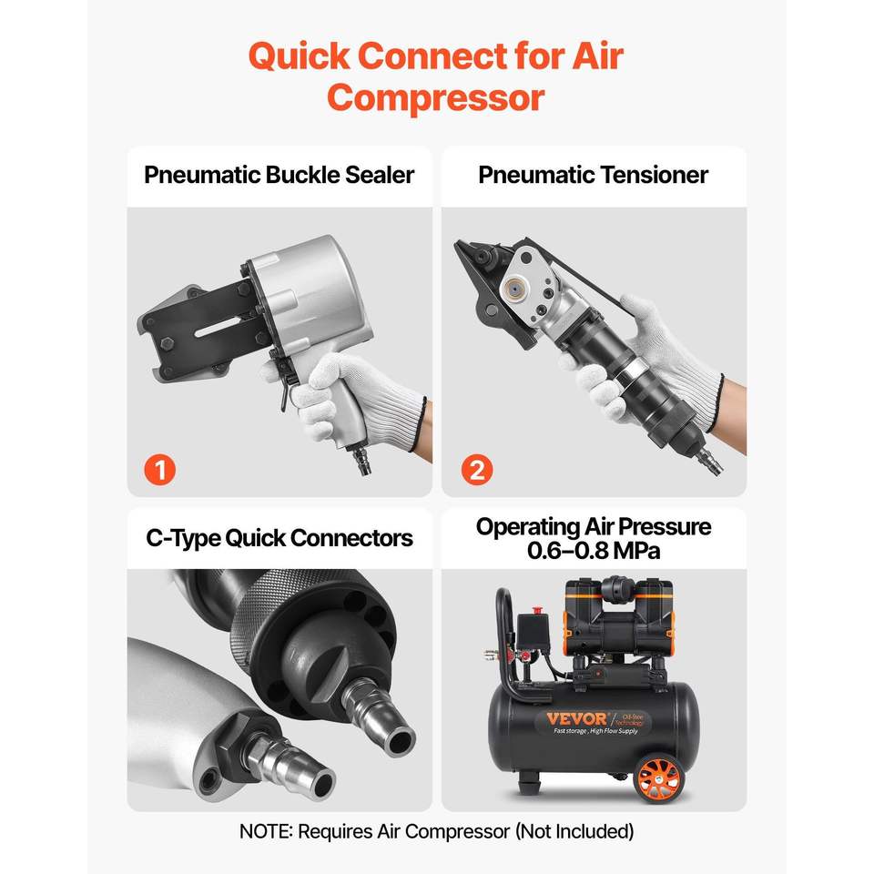 Tendinastro Pneumatico per Reggiatura in Acciaio, Forza di Tensione 8500 N, Larghezza 0.748 Pollici, Strumento Metallico Tenditore Taglierina Sigillatrice per Reggiatura da 2 Pollici