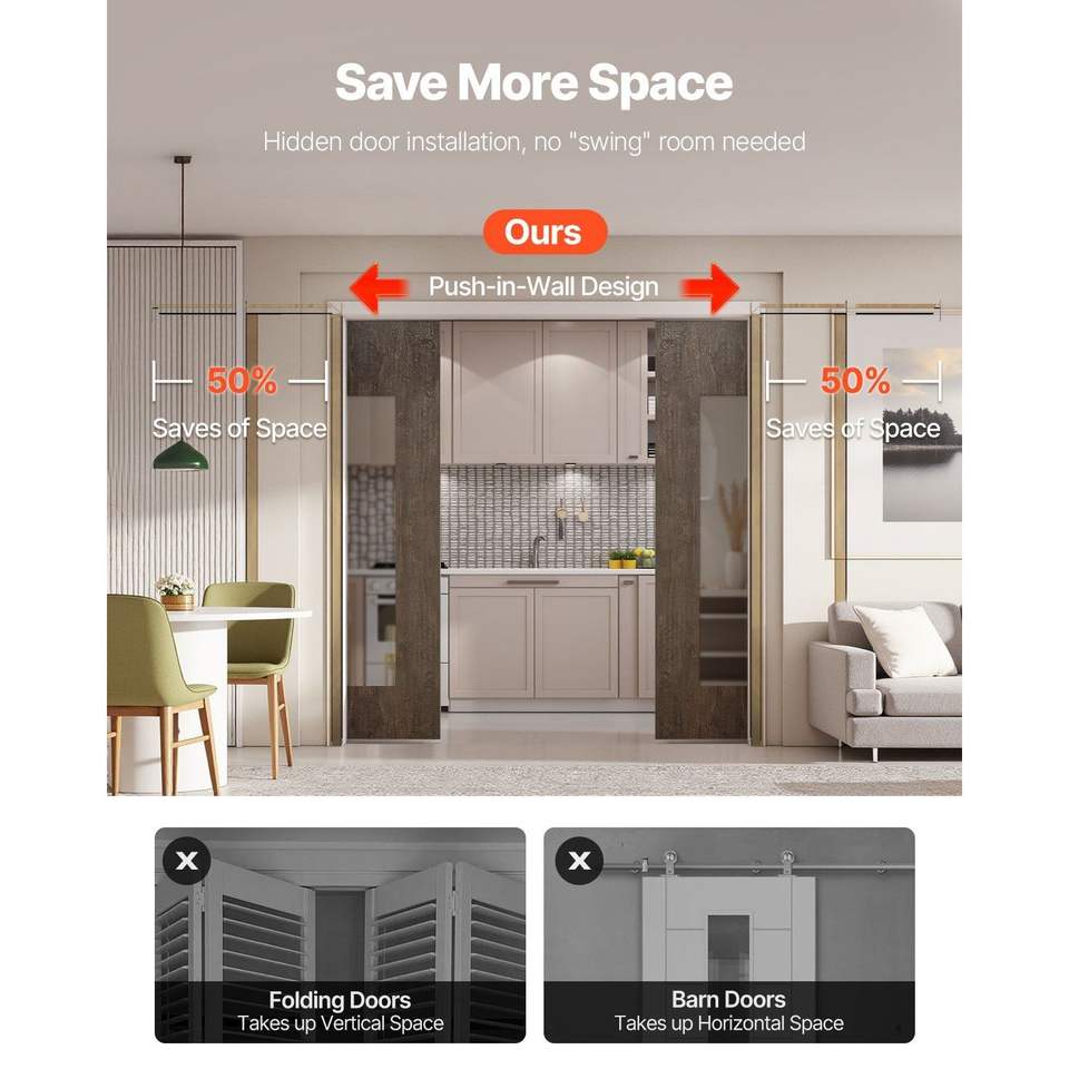 Kit Telaio per Porta Scorrevole a Scomparsa per Porte Larghe 48-72 Pollici e Alte 80 Pollici, Meccanismo di Chiusura Morbida Bidirezionale, Scorrimento Fluido e Silenzioso