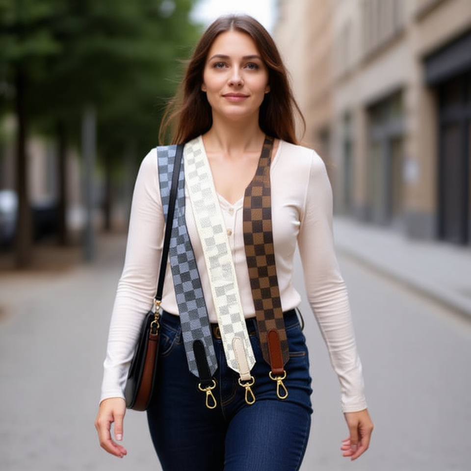 Cinghia per Borsa Pocket Wing 100cm 110cm in PU a Scacchi, Accessori Donna