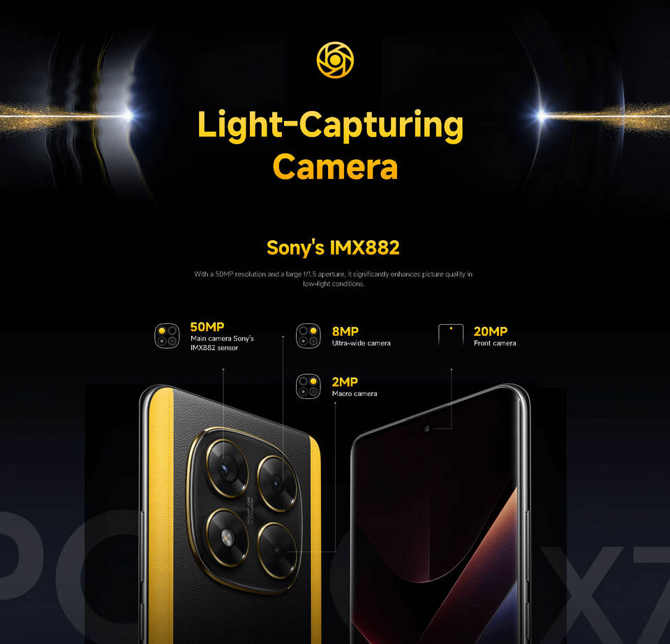 Smartphone Poco X7 con Ricarica Rapida 100W, Tastiera QWERTY, Riconoscimento Facciale, Funzioni di Gioco e Fotocamera per Selfie