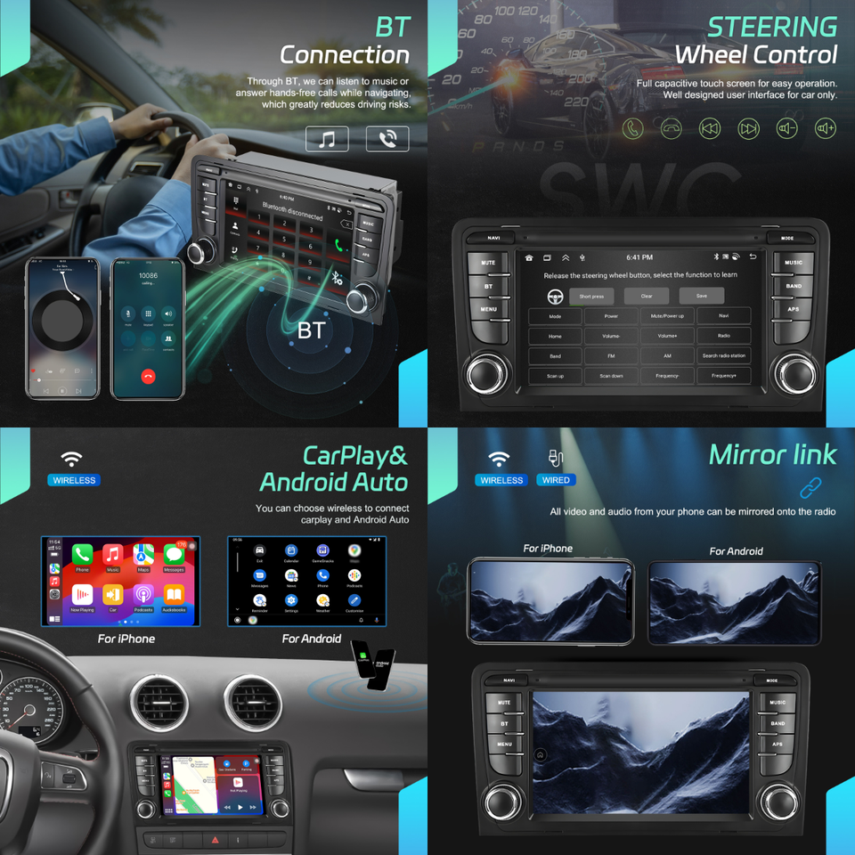 Podofo 7" 4+64/6+128GB for Audi A3/S3/RS3 Android Car Radio Wireless CarPlay Android Auto Car Audio Autoradio GPS WIFI BT