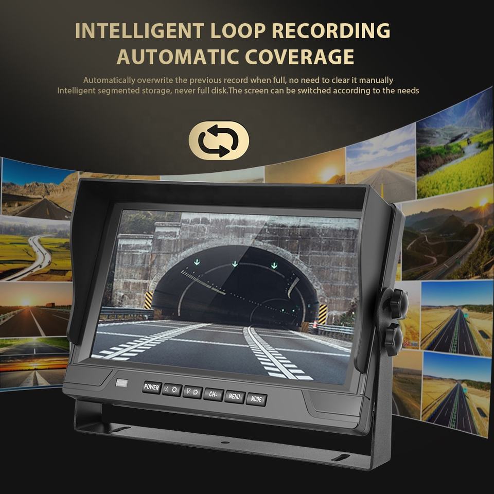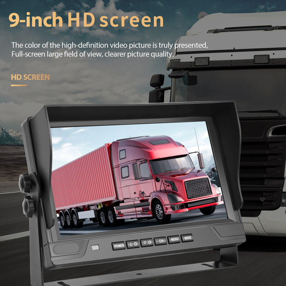 Kit Telecamera Posteriore Digitale Cablata AHD Podofo 9'' 4CH con Visione Notturna IPS per Camion, Autobus, Camper 12V-24V con Registrazione