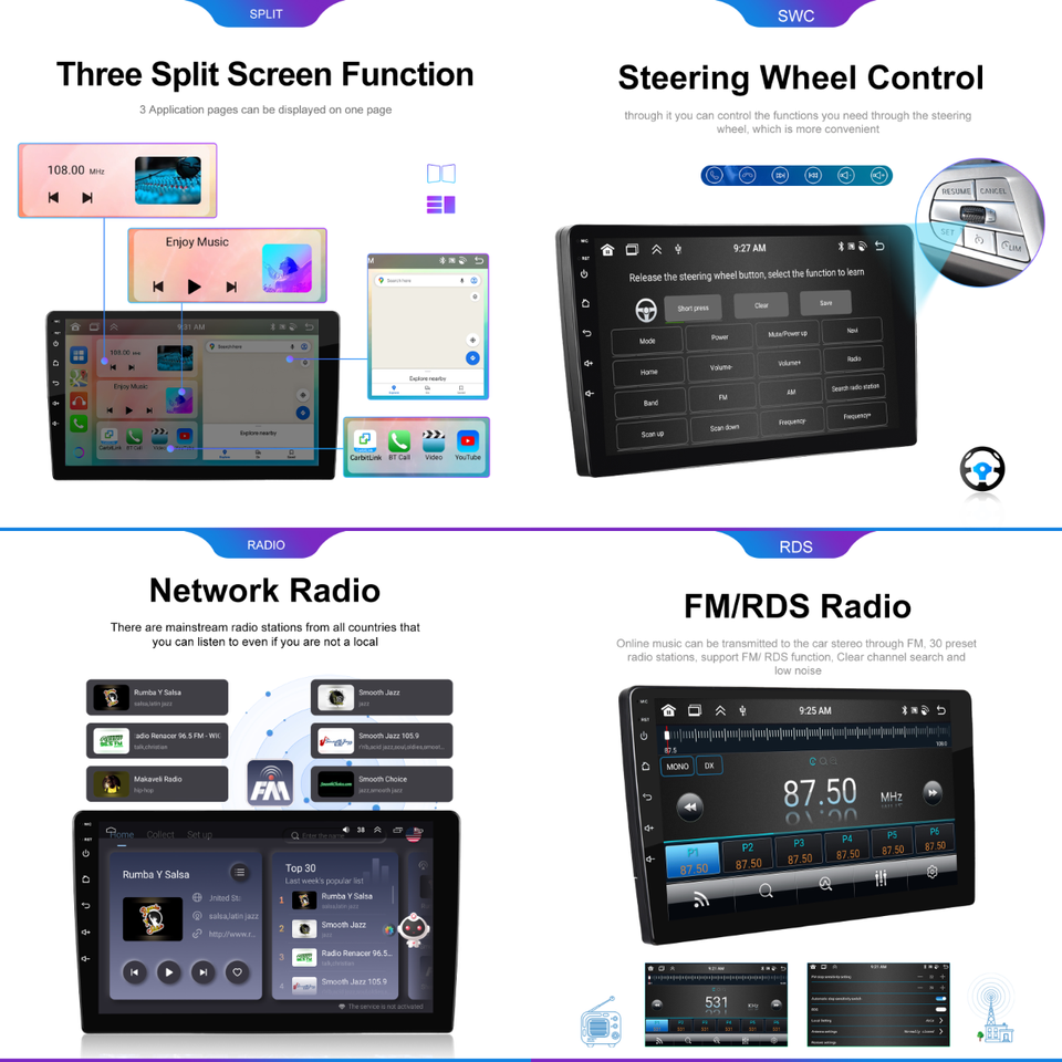 GPS, Stereo Stereo, HANDSFREE, Telecomando, Amplificatore, DSP, CarPlay, DVB +, Specchio Link, Android auto, Microfono incorporato, Schermo diviso, File Manager, Auto Controllo del VolanteFunzione