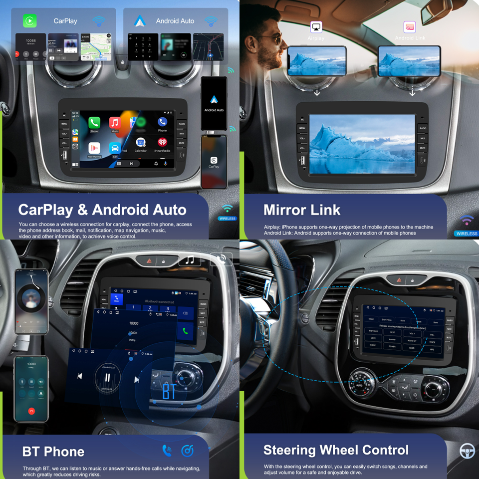 Gps, Stereo, HANDSFREE, Remote Control, Amplifier, CarPlay, android auto, Split Screen, File Manager, Car Steering Wheel Control, phone link, Optional Home page APP display, Multiple UI choseFunction
