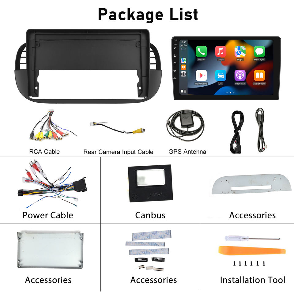 Autoradio Podofo Doppio Din 9 Pollici Android Wireless Carplay Android Auto con Supporto GPS e Telecamera AHD per FIAT 500 2007-2015 OEM