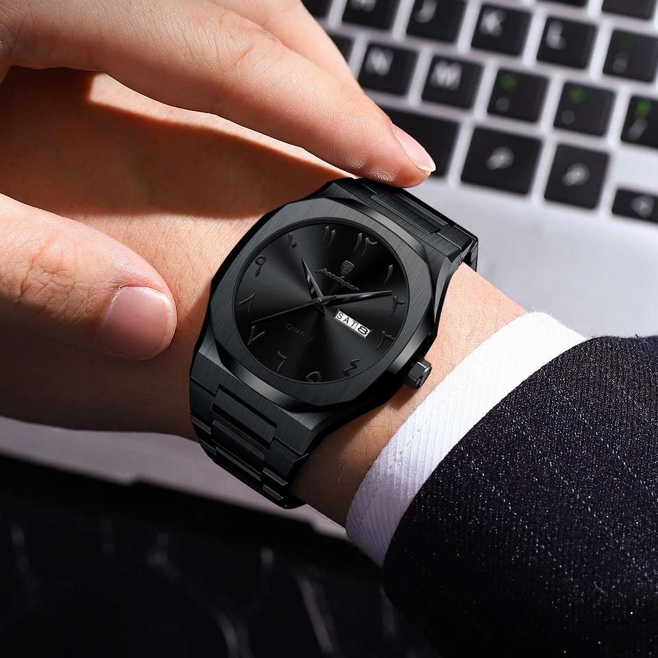 Orologio da Uomo Poedagar Classico con Quadrante Arabo Mediorientale, al Quarzo, Impermeabile, in Acciaio Inossidabile