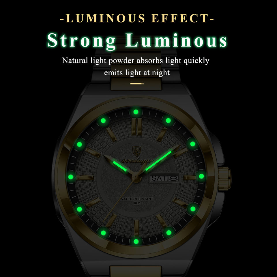 Poedagar Original Luxury Quartz Watch for Men Waterproof Luminous Stainless Steel Strap Mens Watch