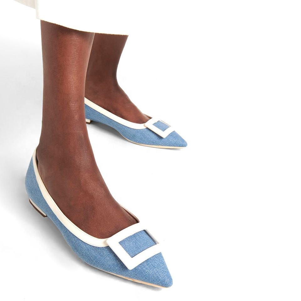 Scarpe basse a punta da donna con fibbia Jeans Denim Ballerina ballerine pantofole blu