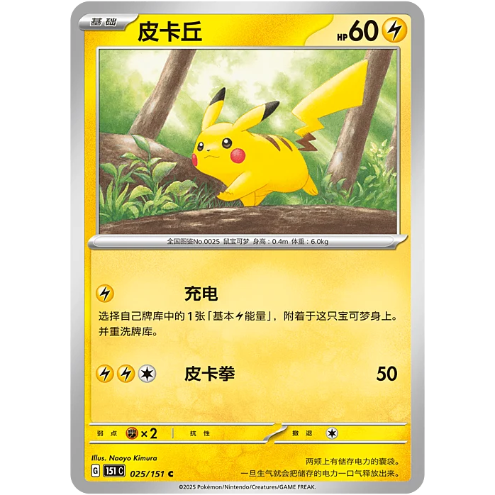 Carte Pokémon Gioco di Carte S-Cinese Pikachu 025/151 Realizzate in Carta Resistente [CINA]