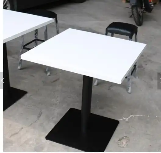 Polished Artificial Stone Rectangle Fast Food Dining Table Modern White Kitchen Table with Black Metal Base