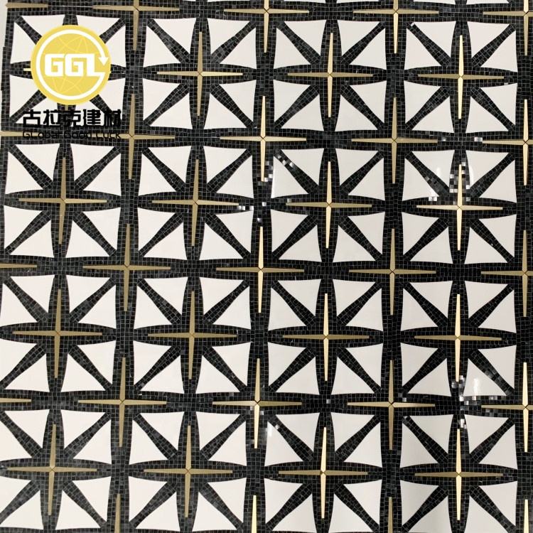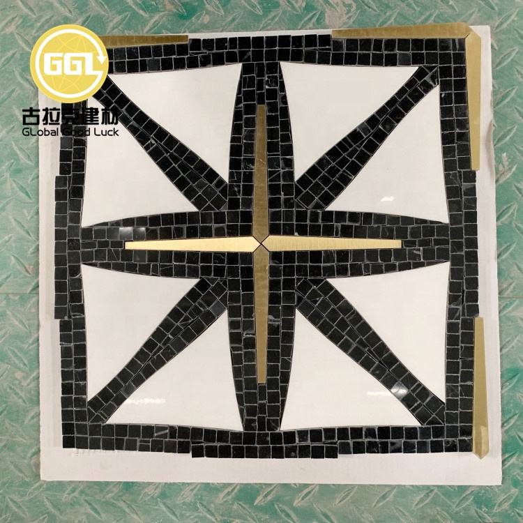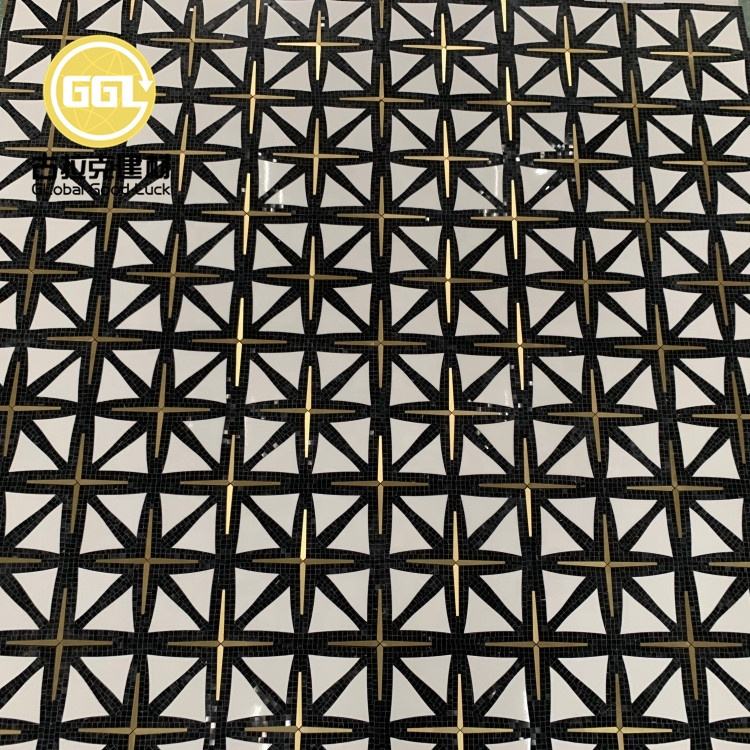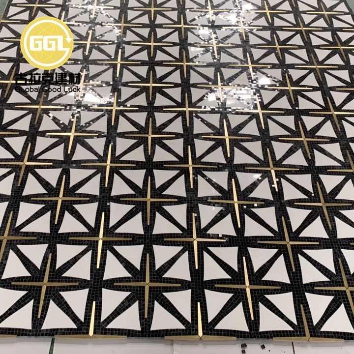 Polished Black Nero Marquino Marble Mix Brass Copper Mosaic Tile
