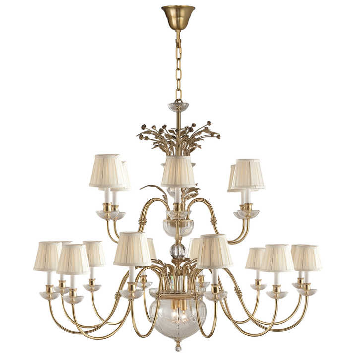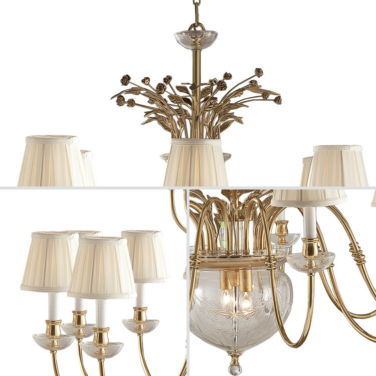 Polished Brass Rose Flower Gold 18 Lights Indoor Decoration Glass Ball Chandelier Lamp OEM ODM