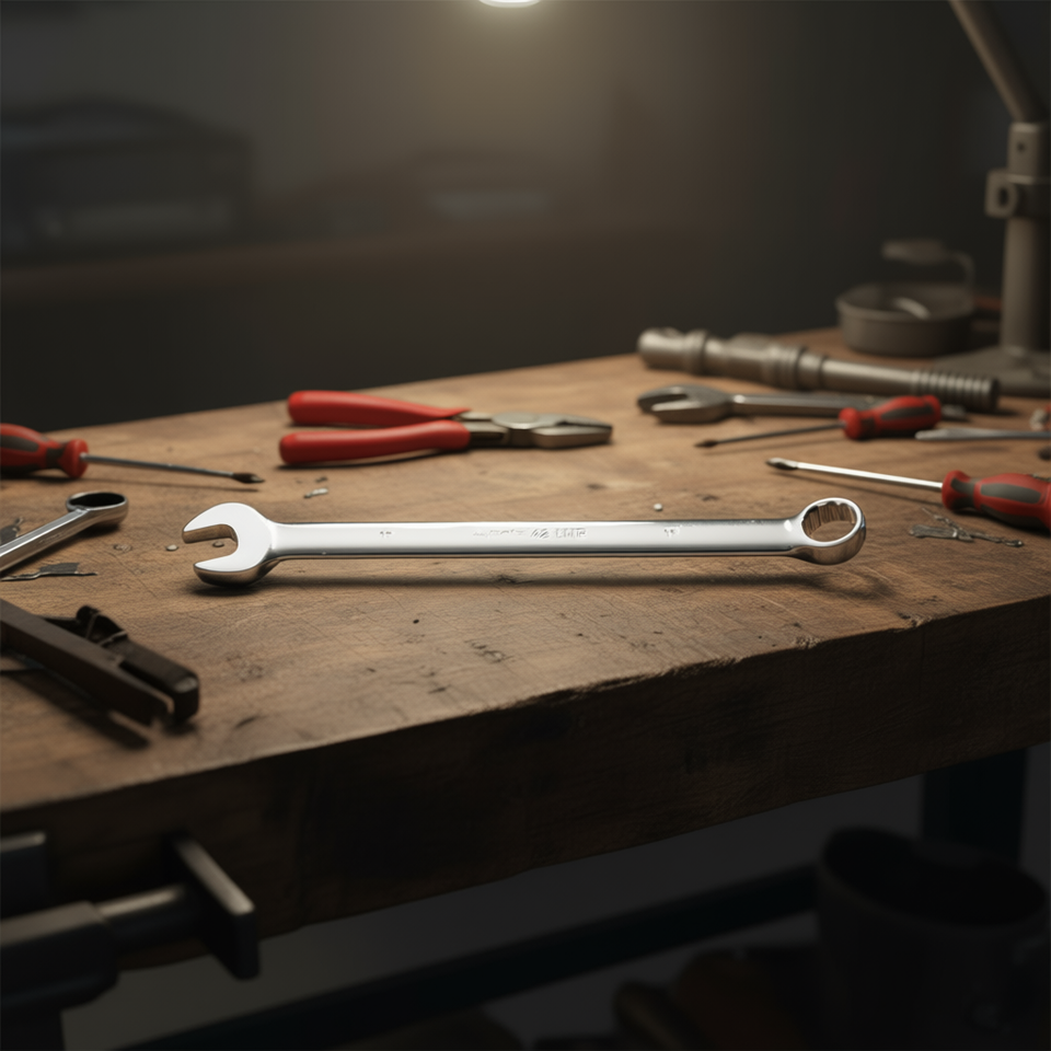 Chiavi Combinate Lunghe in Cromo Lucido con Estremità Aperta e Anello Offset