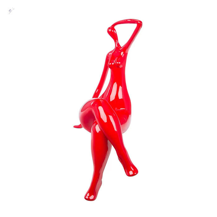 Polished Modern Female Art Sitting Abstract Woman Bright-Colored Statue Figurine