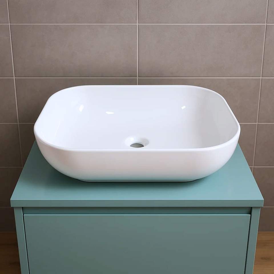 Lavabo da bagno rettangolare in ceramica bianca lucida 45.5x32.5x13.5 arredo bagno 1 confezione
