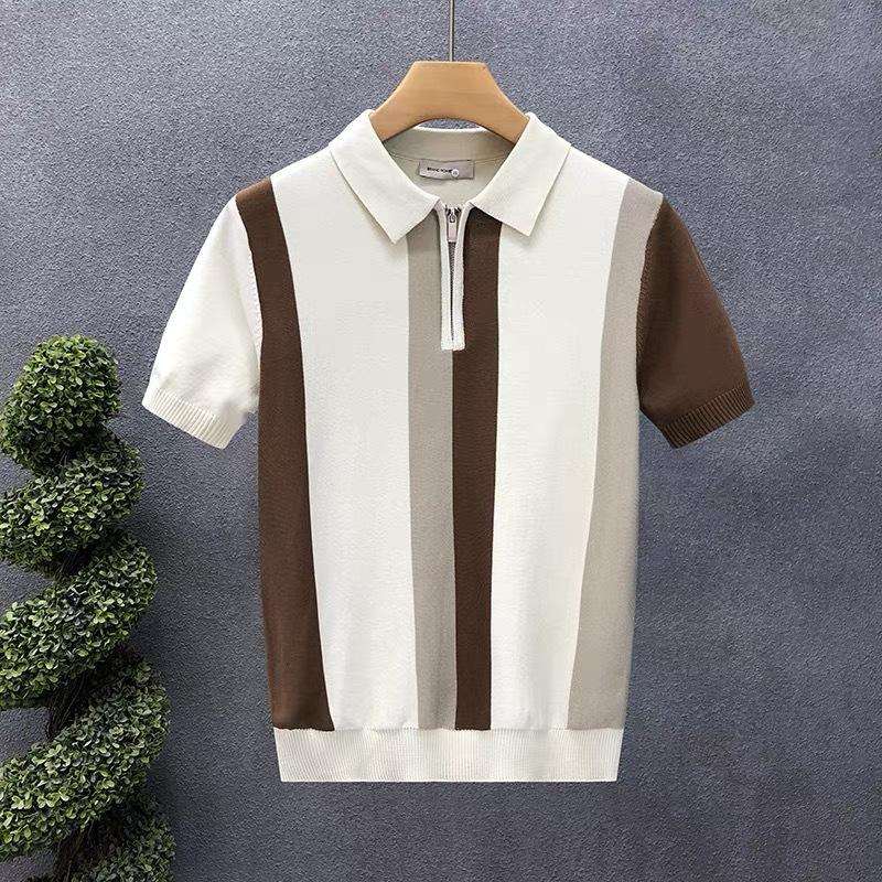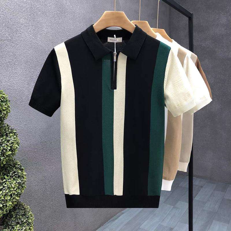 Polo shirt mercerized cotton short sleeve men's polo shirt gold thread men's short sleeve silk