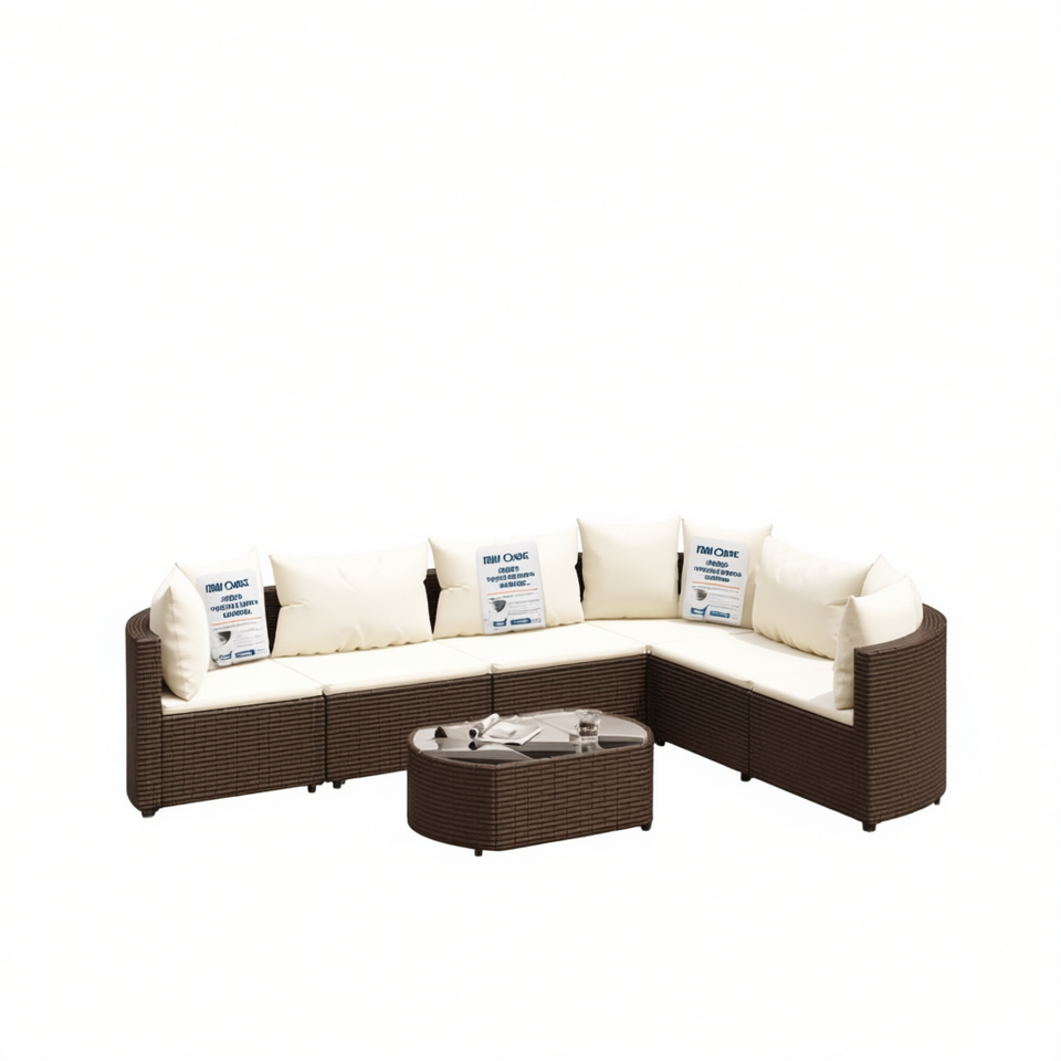 Set Divano da Esterno in Polyrattan Marrone 7 Pezzi con Cuscini, Arredamento da Giardino Stile Contemporaneo