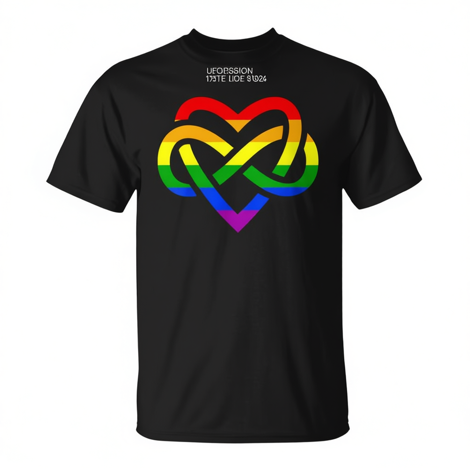 T-shirt Polyamory Infinity Heart Symbol Rainbow Pride per adulti, unisex, manica corta, girocollo, stampa digitale