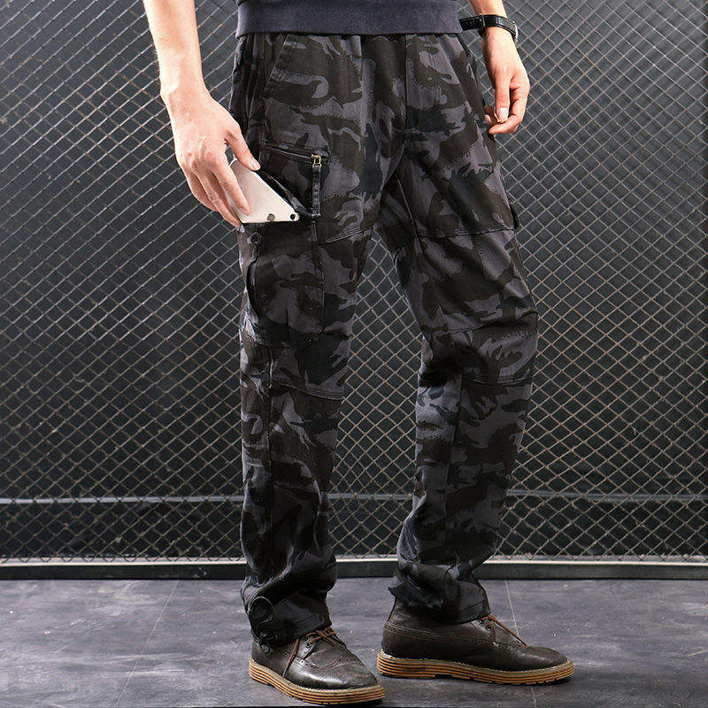 Polyester Cotton Black Cargo Pants Mens Clothing Custom Logo Multiple Side Pocket Men's Pants