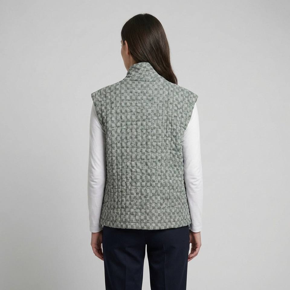 Polyester Linen Checkered Pattern Vest with Functional Pockets