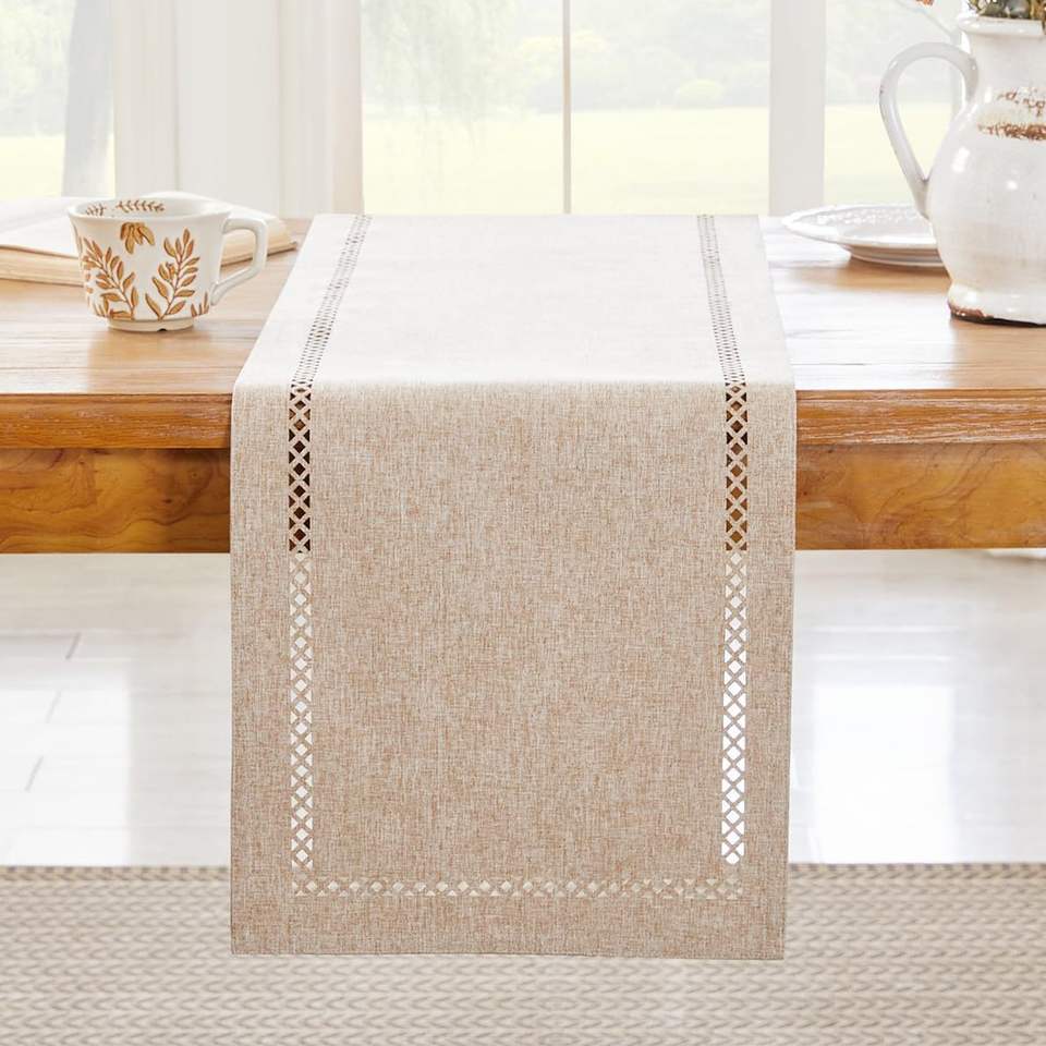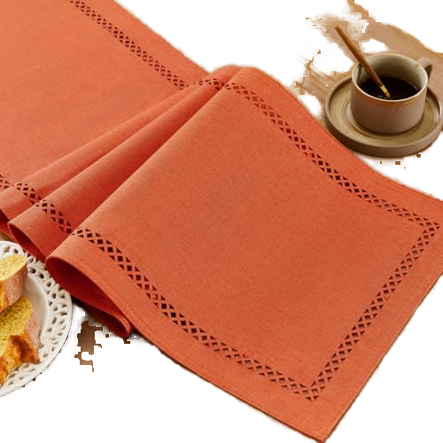 Runner da Tavola in Poliestere Stile Rustico Geometrico Traforato 13x36 Pollici Arancione Decorazione Autunnale Stile Fattoria per il Ringraziamento