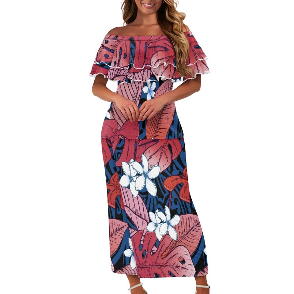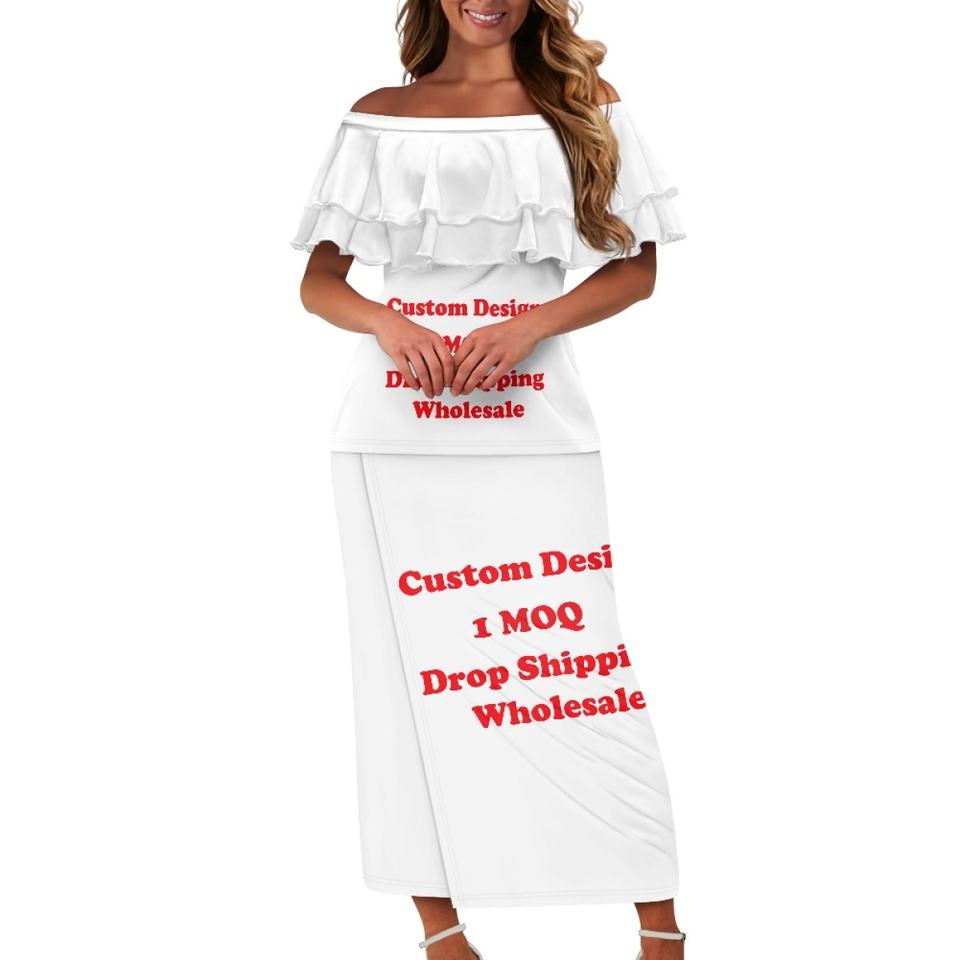 Abbigliamento polinesiano donna due pezzi Set personalizzato Puletasi con spalle scoperte top e gonne lunghe